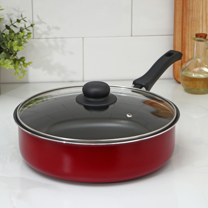 Сотейник «Эксперт», 3.5 л, d=26 см, пластиковая ручка, стеклянная крышка, антипригарное покрытие, алюминий, бордовая