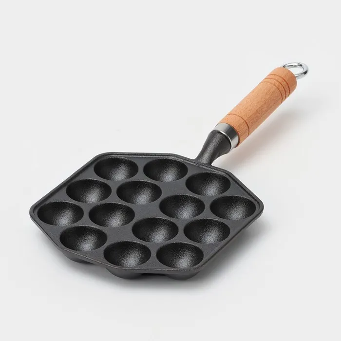 Сковорода чугунная «Сферос», 14 ячеек, 36×16×3.5 см, деревянная ручка