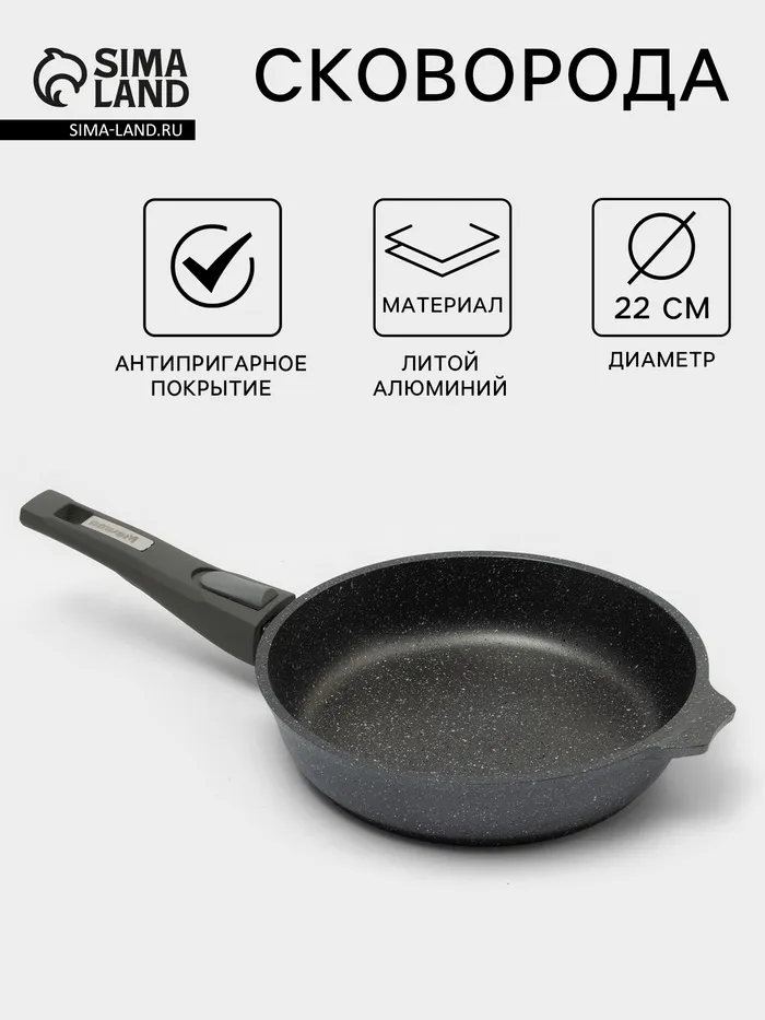 Сковорода Мечта «Гранит», d=22 см, съёмная ручка, антипригарное покрытие, литой алюминий, серая