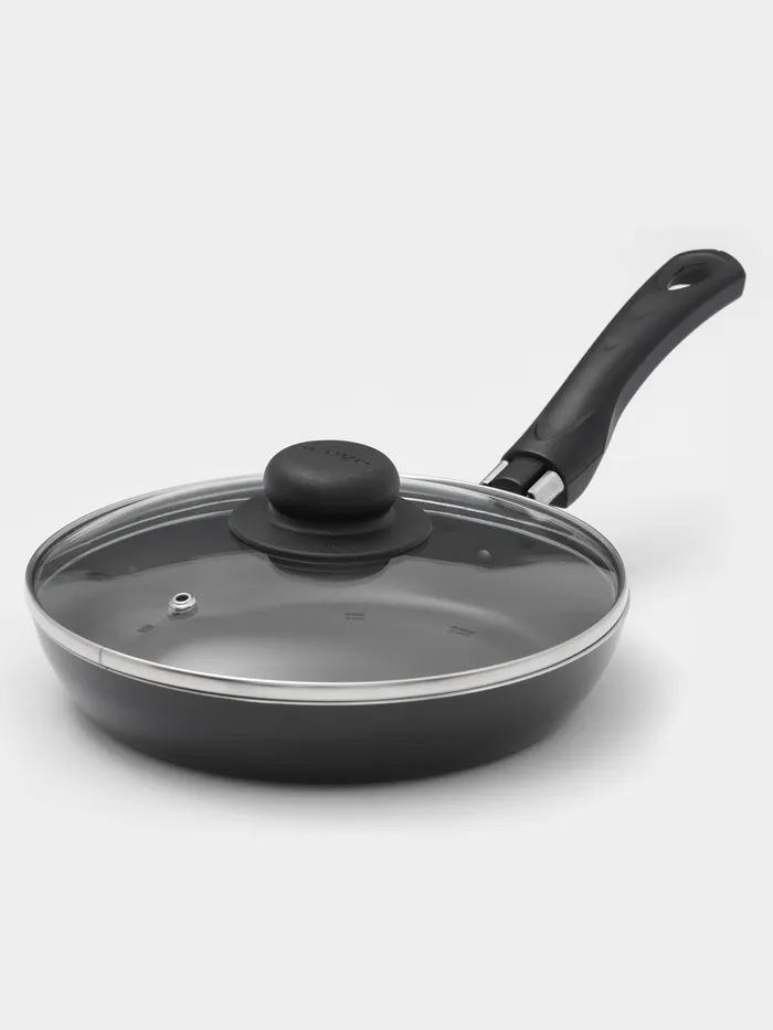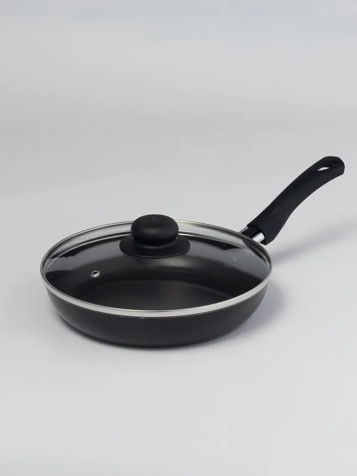 Сковорода Consul, d=22 см, стеклянная крышка, антипригарное покрытие, алюминий, чёрная