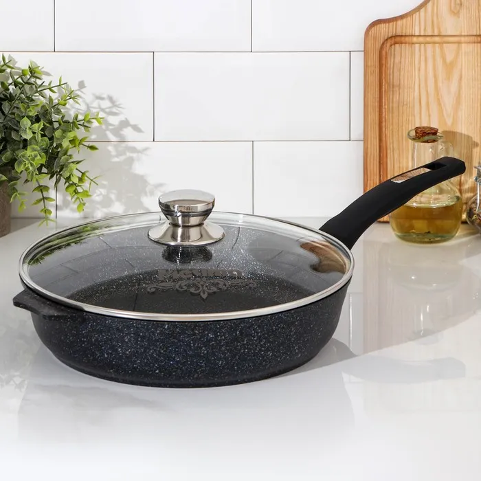 Сковорода «Гранит Star», d=28 см, стеклянная крышка, антипригарное покрытие, тёмно-синий