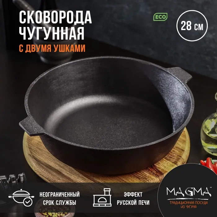 Сковорода литая чугунная Magma, d=28 см, h=8 см, с двумя ушками, индукция