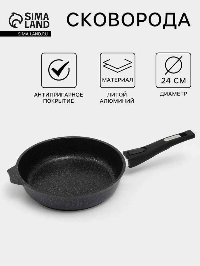 Сковорода Мечта «Гранит Star», d=24 см, съёмная ручка, антипригарное покрытие, литой алюминий, тёмно-синяя