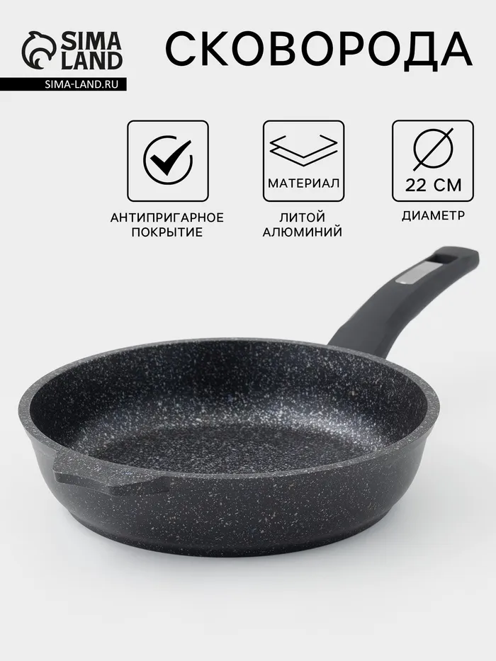 Сковорода Мечта «Гранит Star», d=22 см, пластиковая ручка, антипригарное покрытие, литой алюминий, тёмно-синяя