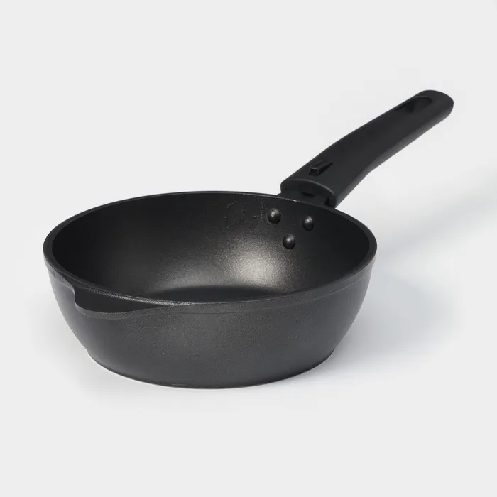Сковорода алюминиевая «Уля», d=16 см, съёмная ручка, антипригарное покрытие, цвет черный металик