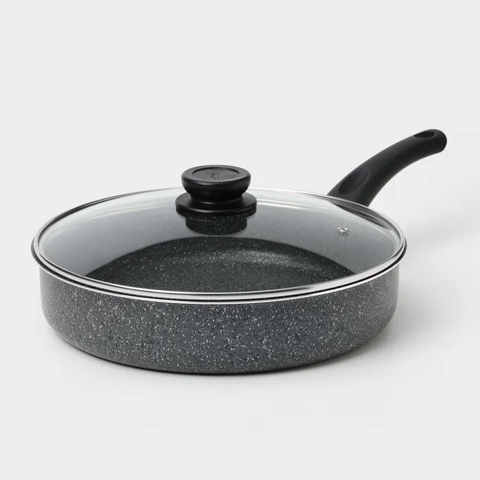 Сотейник Granit, d=28 см, с антипригарным покрытием, стеклянная крышка, цвет серый