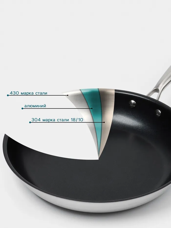 Сковорода 3Ply Hanna Knövell, d=30 см, h=5.5 см, толщина 2.2 мм, индукция, антипригарное покрытие, нержавеющая сталь