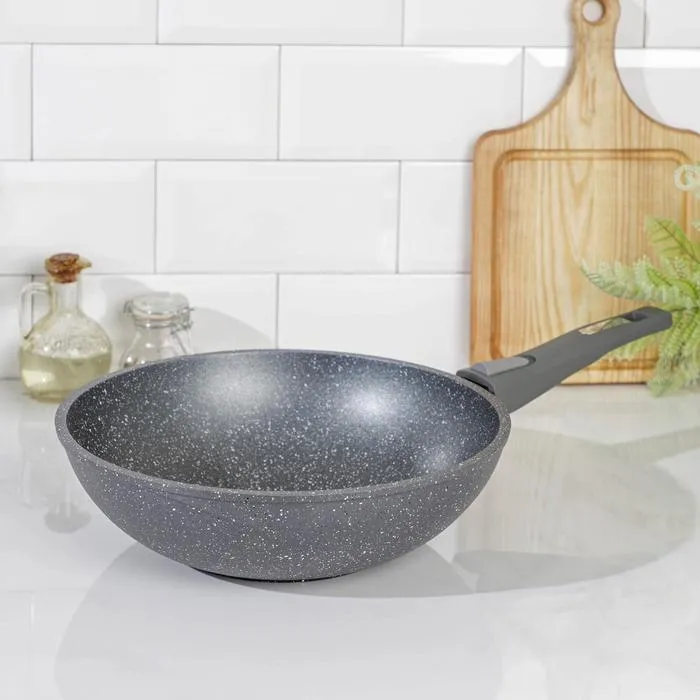 Сковорода - вок Мечта «Гранит», d=28 см, съёмная ручка, антипригарное покрытие, литой алюминий, серая