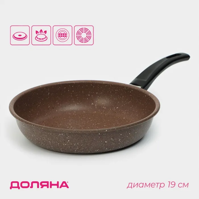 Сковорода Доляна Rock, d=19 см, пластиковая ручка, антипригарное покрытие, цвет коричневый