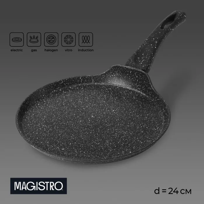 Сковорода блинная Magistro Dark, d=24 см, ручка soft-touch, антипригарное покрытие, индукция, чёрная