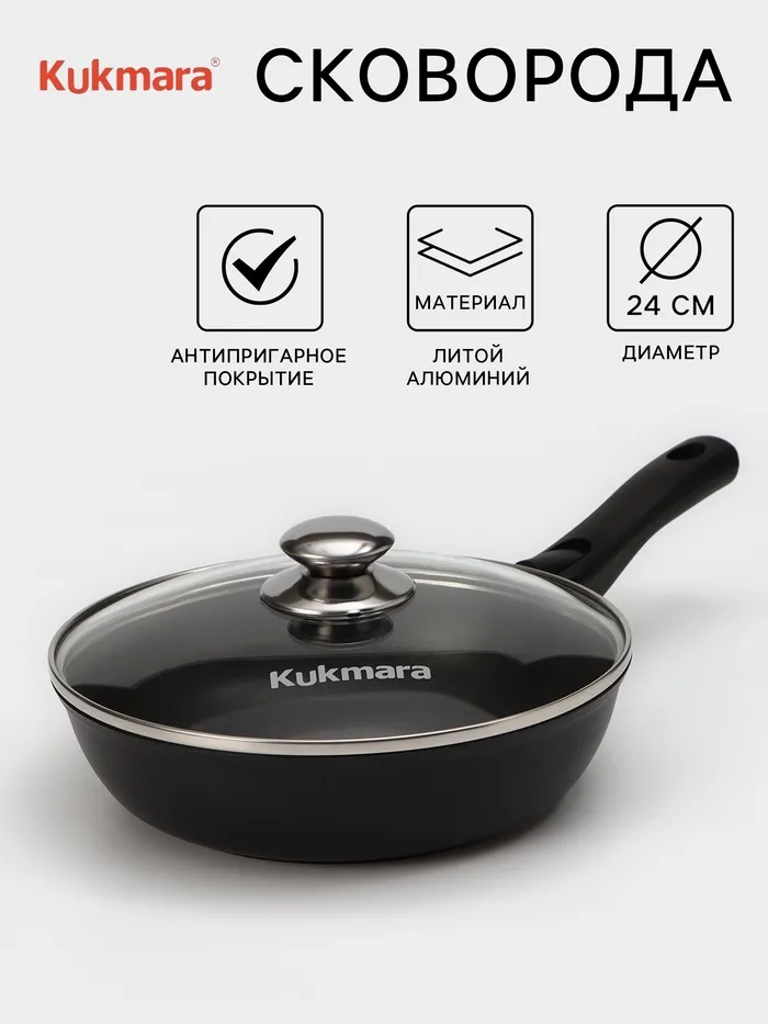 Сковорода Consul, d=24 см, стеклянная крышка, пластиковая ручка, антипригарное покрытие, алюминий, чёрная
