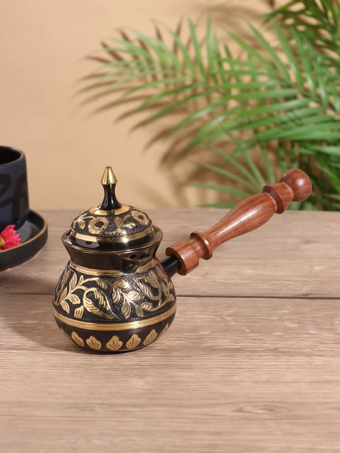 Турка "Чёрное золото" латунь, с крышкой и деревянной ручкой, 250 мл