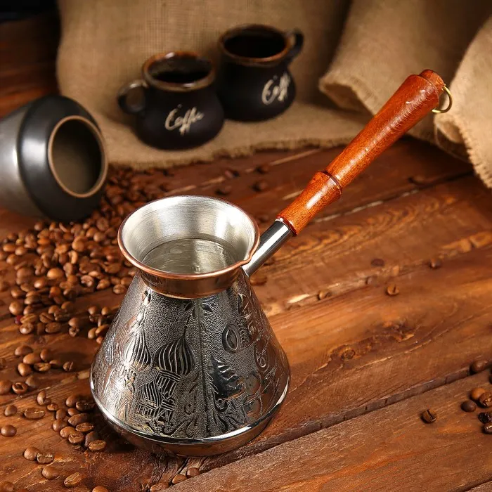 Турка «Серебряные узоры», 650 мл, латунь, с крышкой и деревянной ручкой