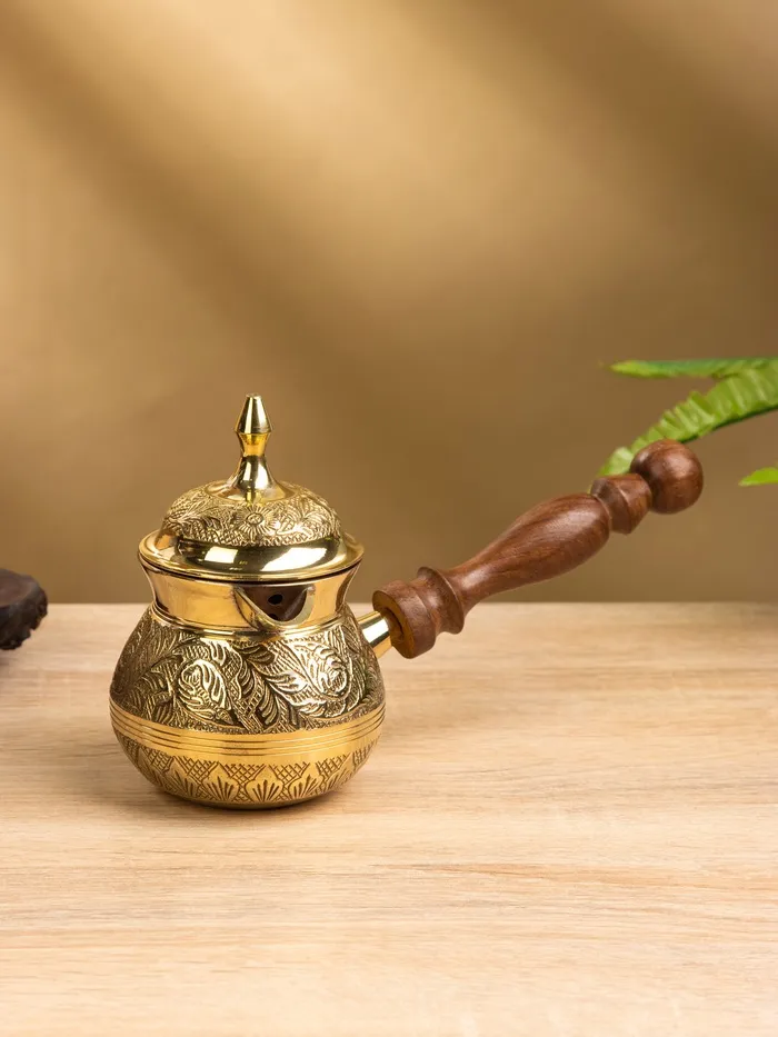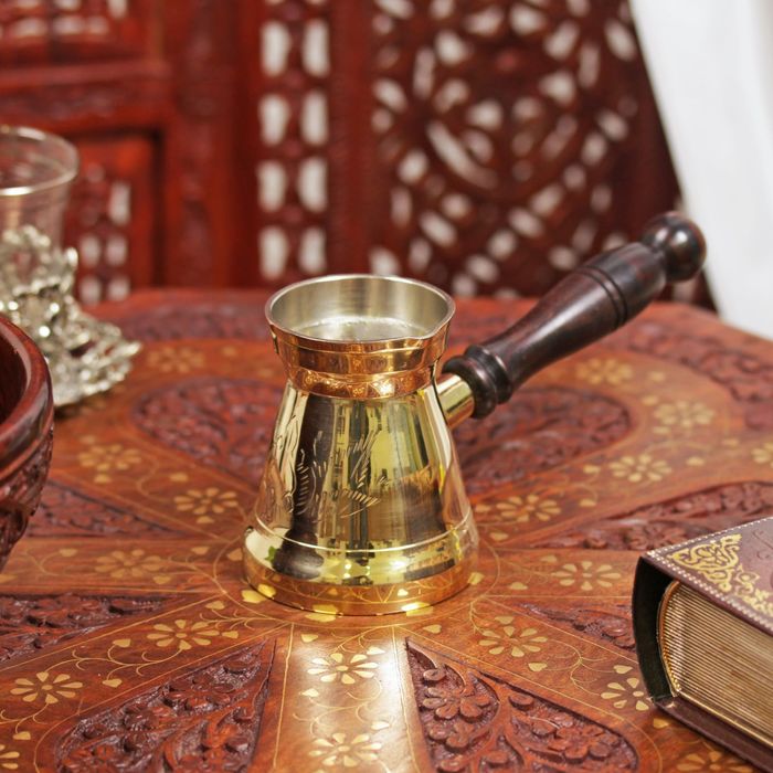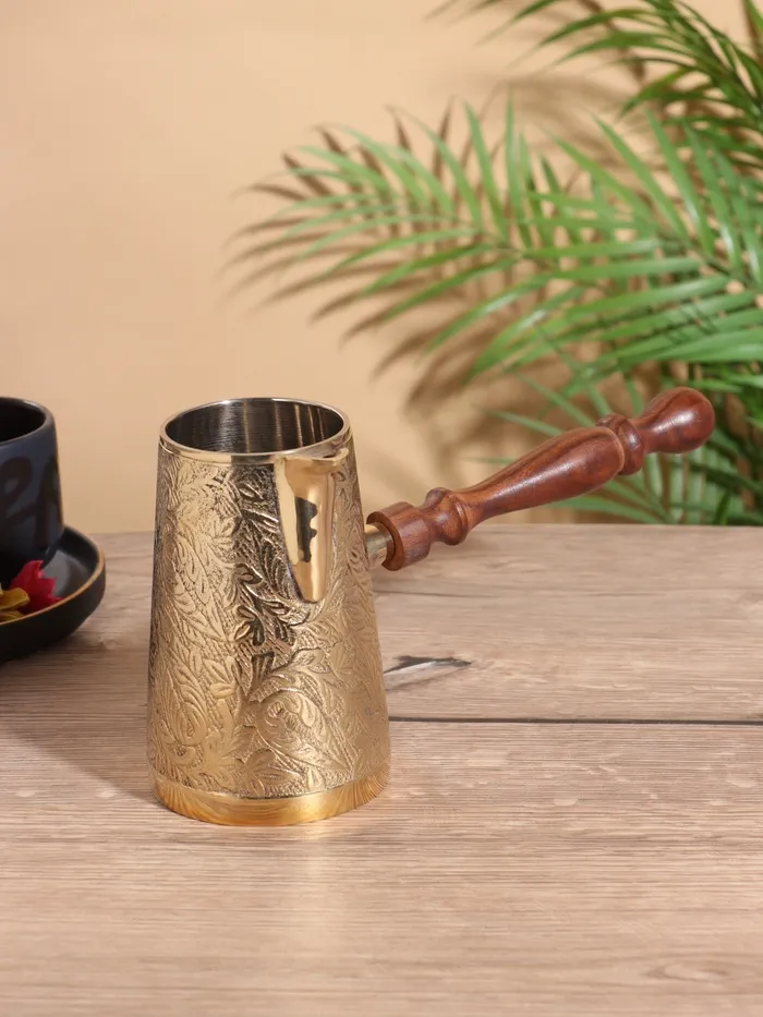 Турка «Золотые узоры», латунь, с деревянной ручкой