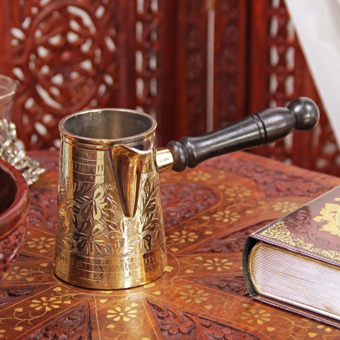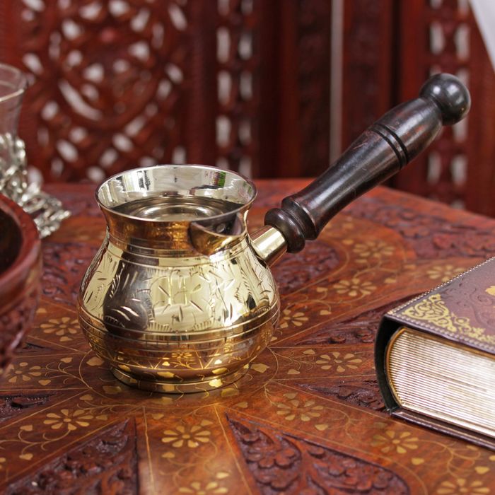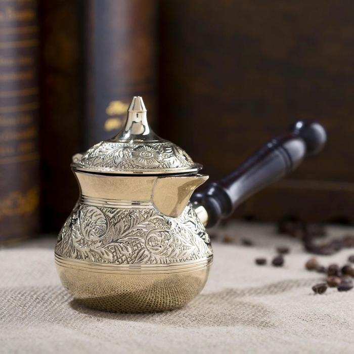 Турка "Золотые узоры" латунь, с деревянной ручкой, 250 мл