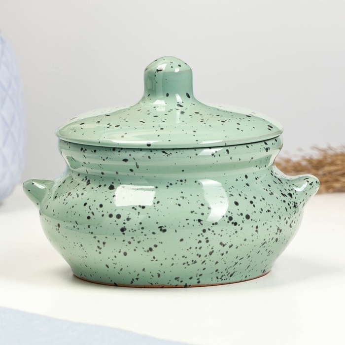 Горшок для запекания Борисовская керамика «Гармония», 600 мл, зелёный