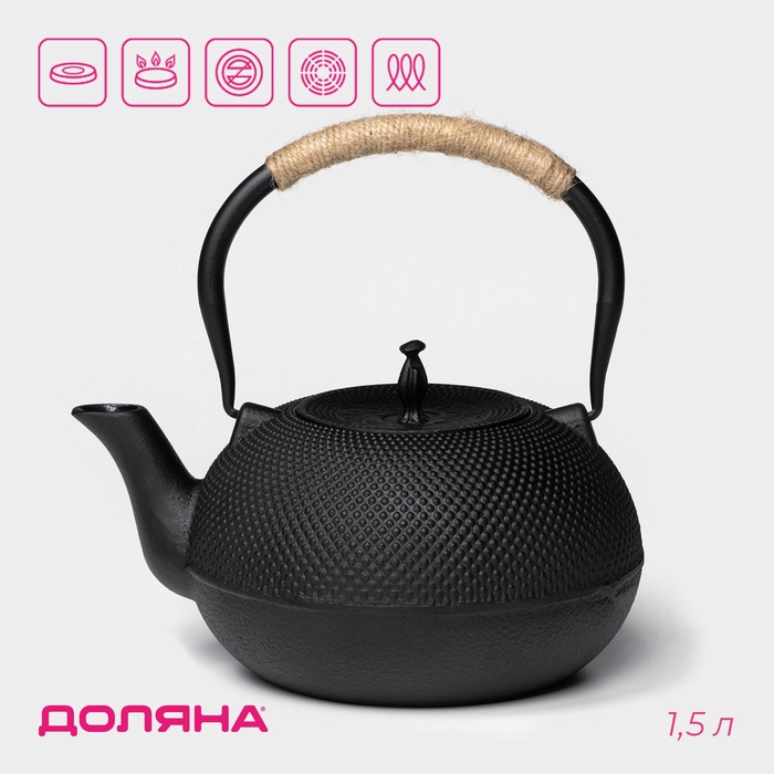 Чайник Доляна «Восточная ночь», 1.6 л, с ситом, индукция, чугун, чёрный