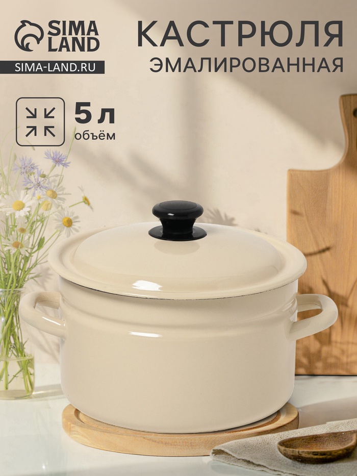 Кастрюля эмалированная, 5 л, d=23.5 см, с крышкой, цилиндрическая, цвет слоновой кости