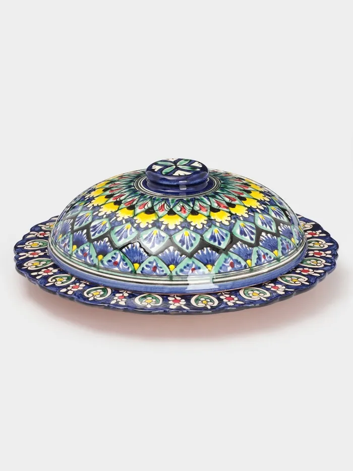 Блинница Риштанская Керамика "Узоры", 24 см, синий