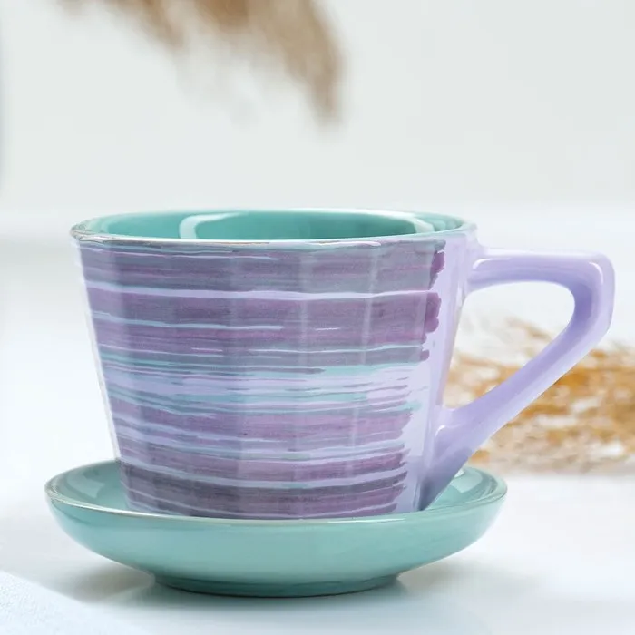 Чайная пара Борисовская керамика «Лаванда», 200 мл, чашка 9×7 см, блюдце d=9 см, сиреневая