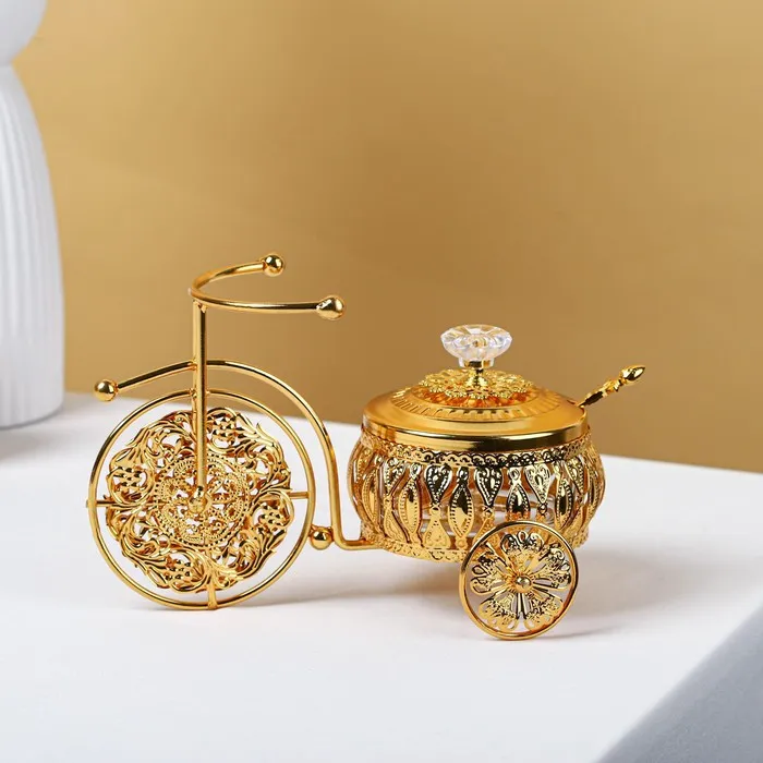 Сахарница «Велосипед», 220 мл, 22×13×13 см, с ложкой, цвет золотой