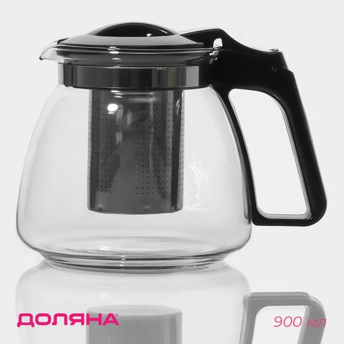 Заварочный чайник Доляна «Иллюзия», 900 мл, металлическое сито, стекло