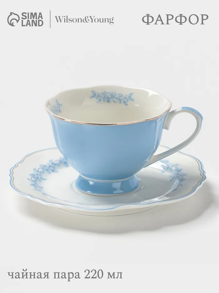 Чайная пара WY Royal blue, фарфор, 220 мл, голубая