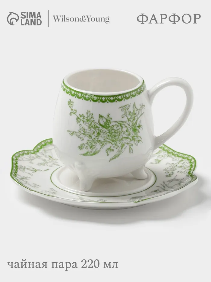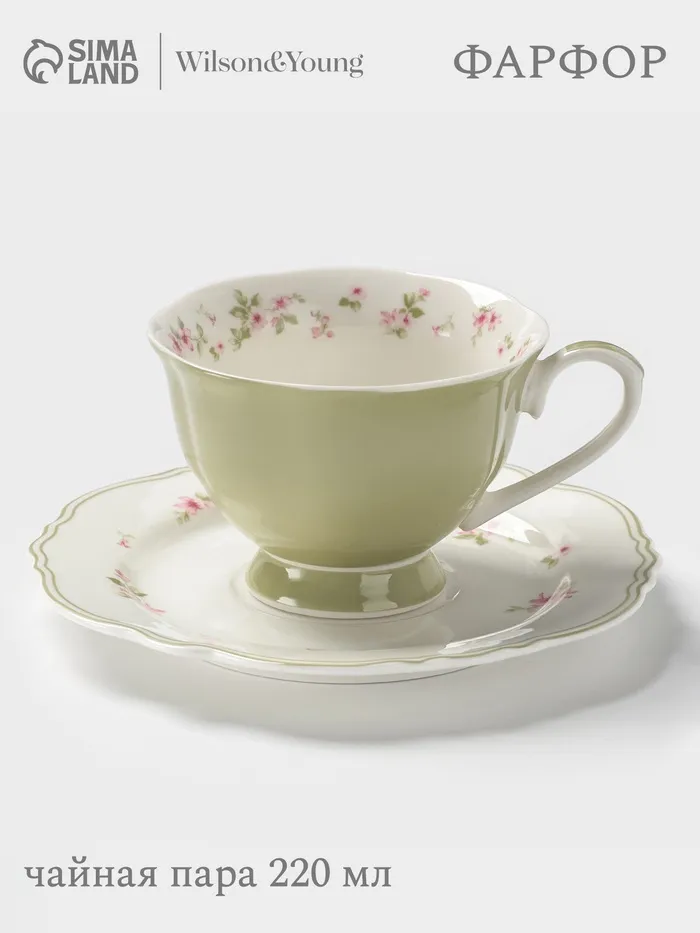Чайная пара WY Spring flowers, фарфор, 220 мл, зелёная