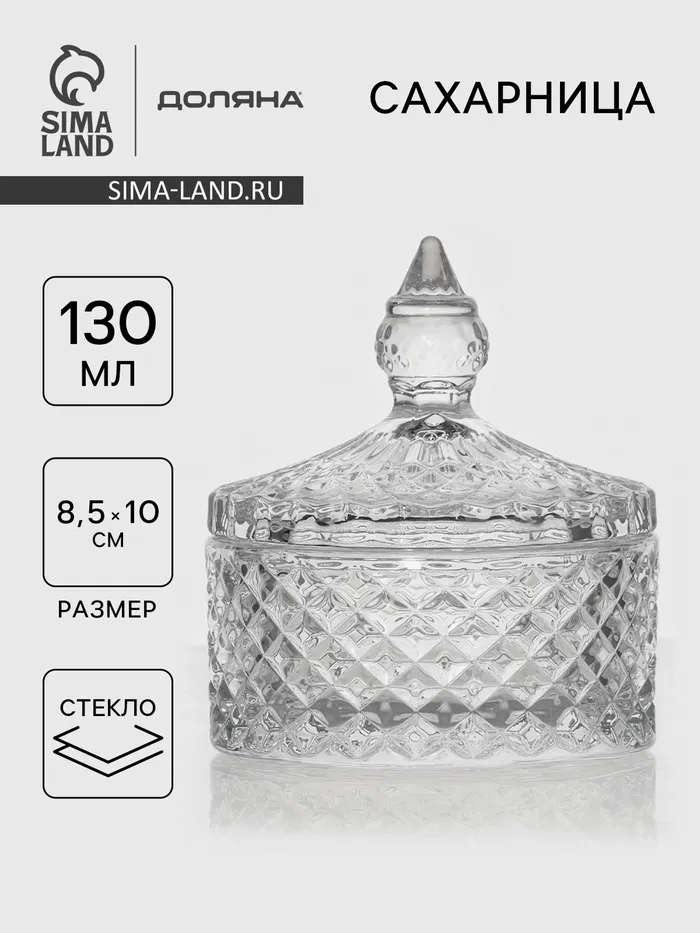 Сахарница Доляна «Рапунцель», 130 мл, 8.5×10 см, стекло, прозрачная