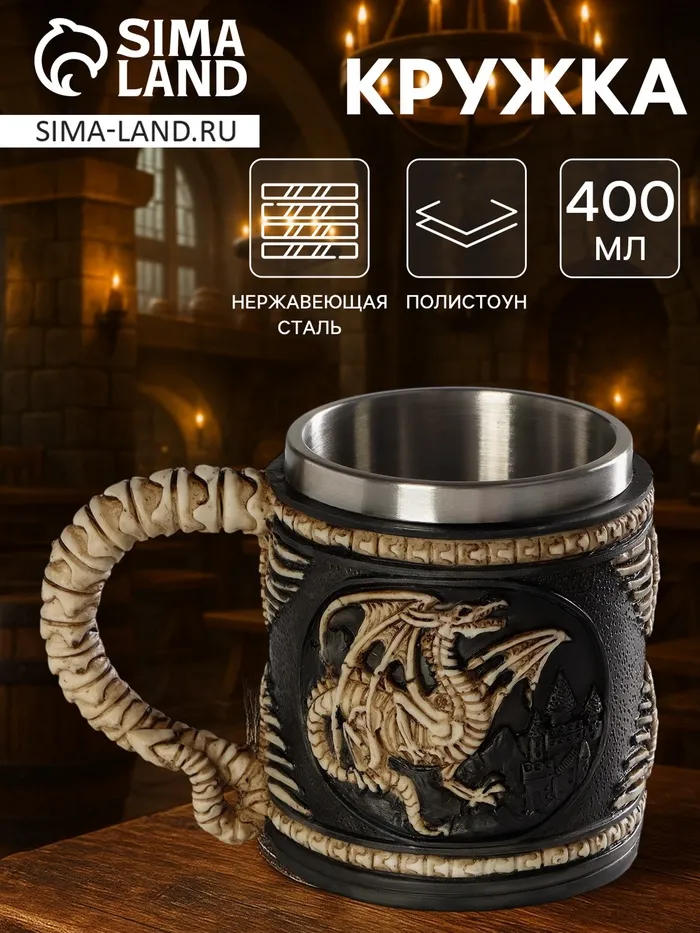 Кружка в стиле средневековья «Дракон. Хэллоуин», 400 мл, нердавеющая сталь, чёрная