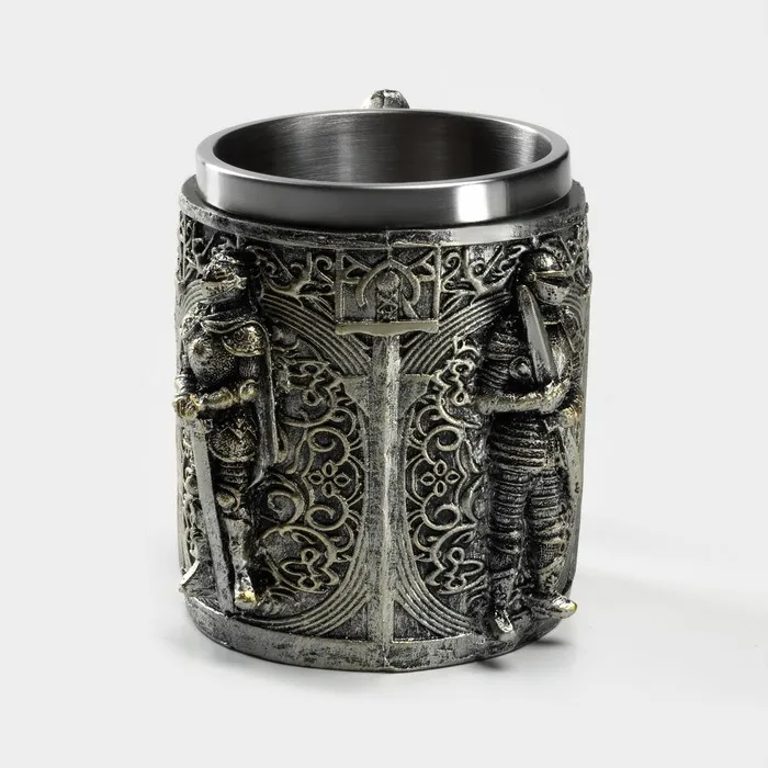 Кружка в стиле средневековья «Стража», 400 мл, нержавеющая сталь, серебристая