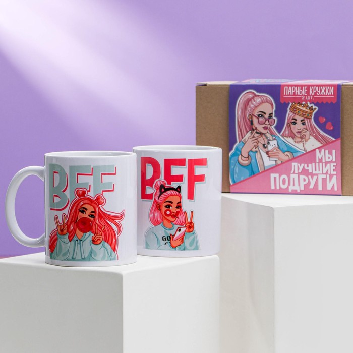 Кружки керамические парные «Для лучших подруг», 2 шт. по 320 мл
