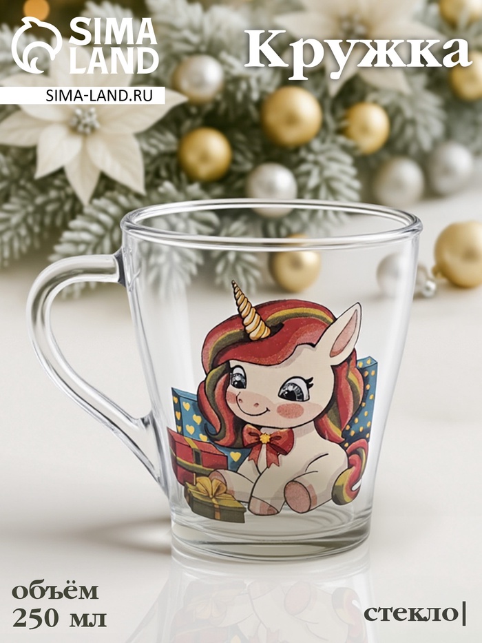 Кружка "Грация. Новогодние единороги", 250 мл, стекло, рисунок МИКС