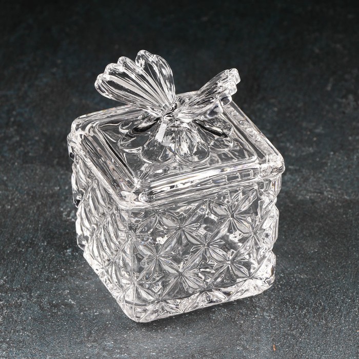 Сахарница стеклянная «Бабочка», 170 мл, 8×10.5 см, с крышкой