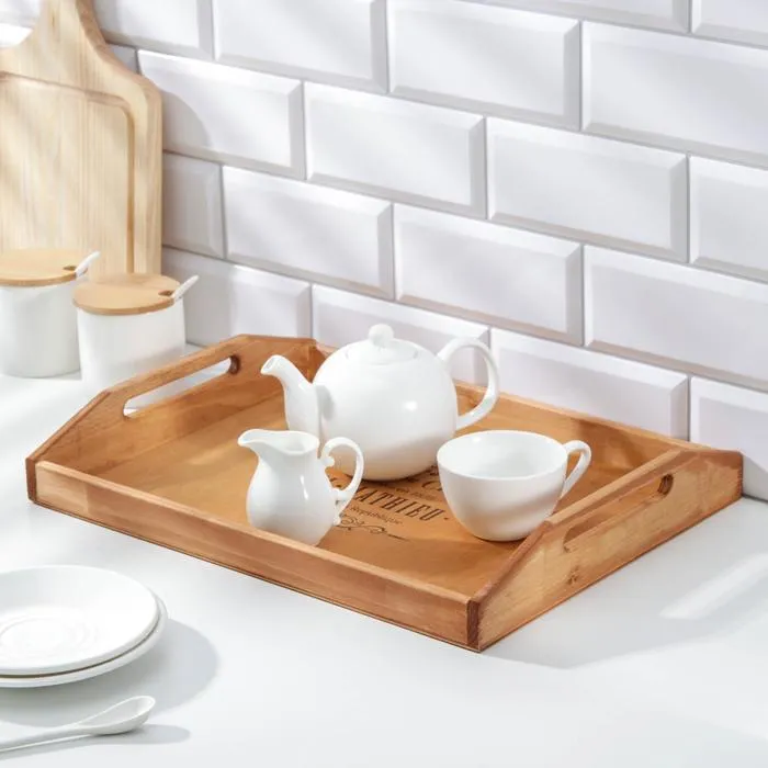 Поднос деревянный с декором, 40×30×7,5 см, сосна