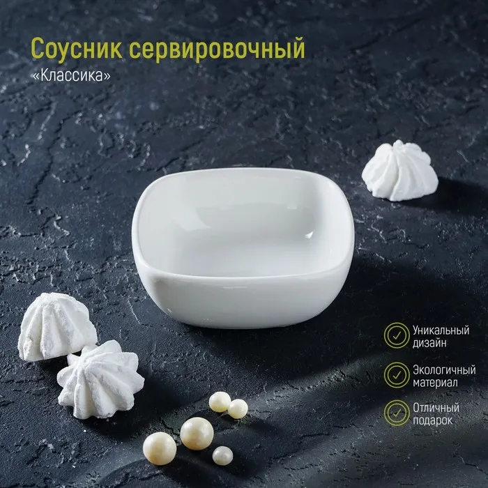 Соусник фарфоровый «Классика», 150 мл, 10×3,5 см, цвет белый