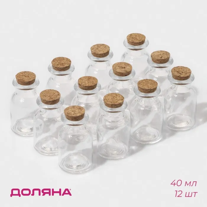 Набор баночек для специй с пробковой крышкой Доляна «Парфе», 40 мл, 4×6.6 см, 12 шт., стекло