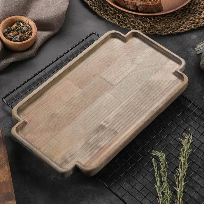Поднос деревянный для подачи Adelica, 35×20×1,8 см, потайные ручки, пропитано маслом, массив берёзы