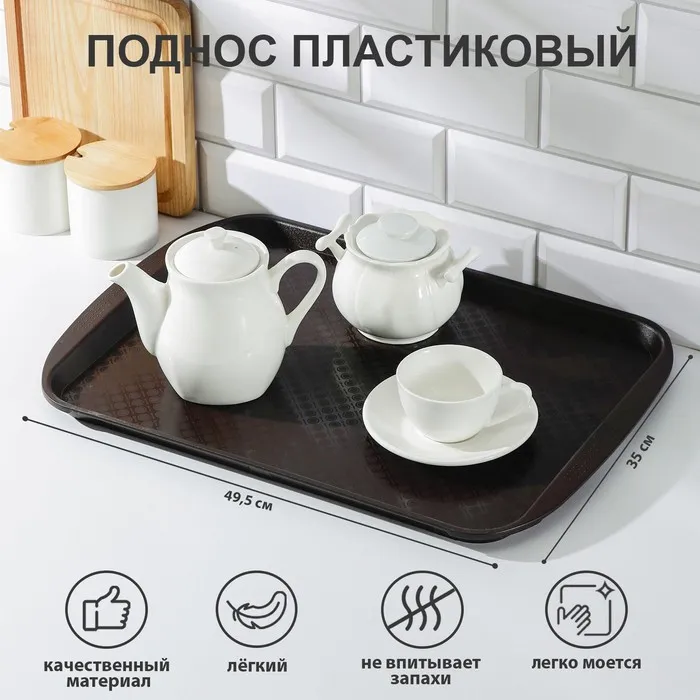 Поднос RESTOLA, 49.5×35 см, пластик, коричневый