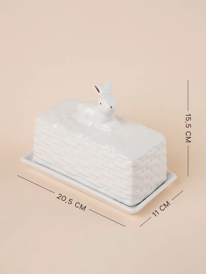 Маслёнка SL Home «Лесные кролики», 20.5×11×15.5 см, керамика, белая