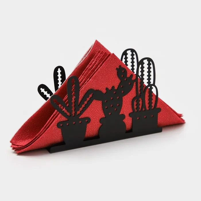 Салфетница Доляна «Кактусы», 15×4×10 см, чёрная