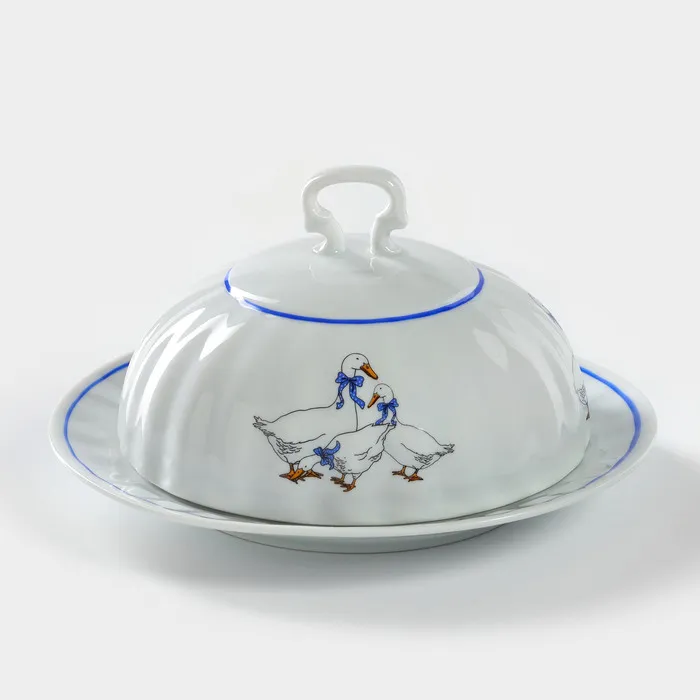 Маслёнка BellaTenero, 500 мл, на бамбуковой подставке, фарфор, белая