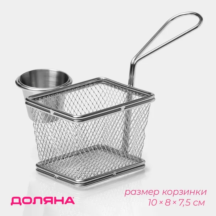 Корзинка для картофеля фри Доляна «Лонгфилд», 10×8×7.5 см, с соусником d=5 см, серебристая