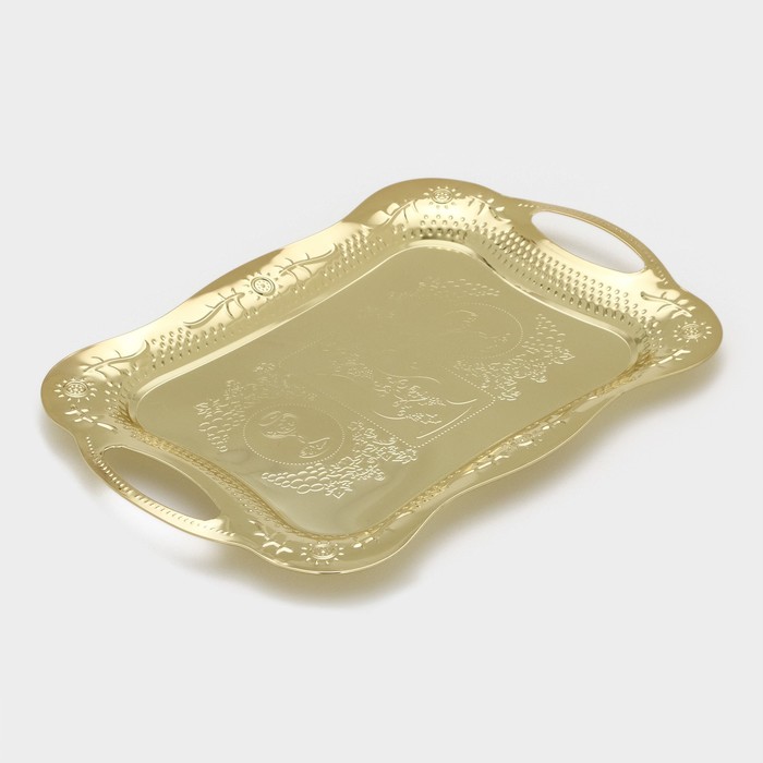 Поднос из нержавеющей стали с ручками «Изобилие. Золото», 44,7×30×3 см, цвет золотой