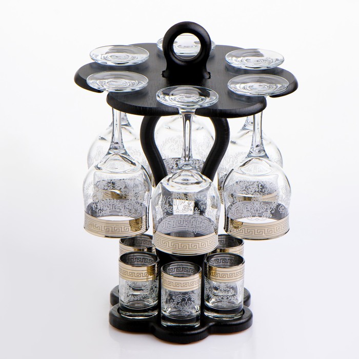 Мини-бар «Изящный», 12 предметов, бокал 240 мл, стопка 50 мл, гравировка, стекло, прозрачный, золотистый