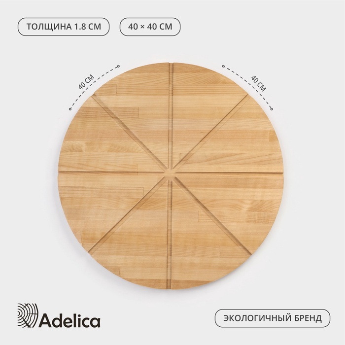 Доска для подачи пиццы деревянная Adelica «Итальяно», с потайными ручками, 8 кусков, d=40 см, толщина 1.8 см, берёза