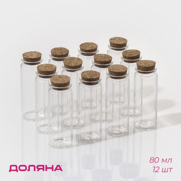 Набор баночек для сыпучих с пробковой крышкой Доляна «Парфе. Колба», 80 мл, 3.7×10 см, 12 шт., стекло