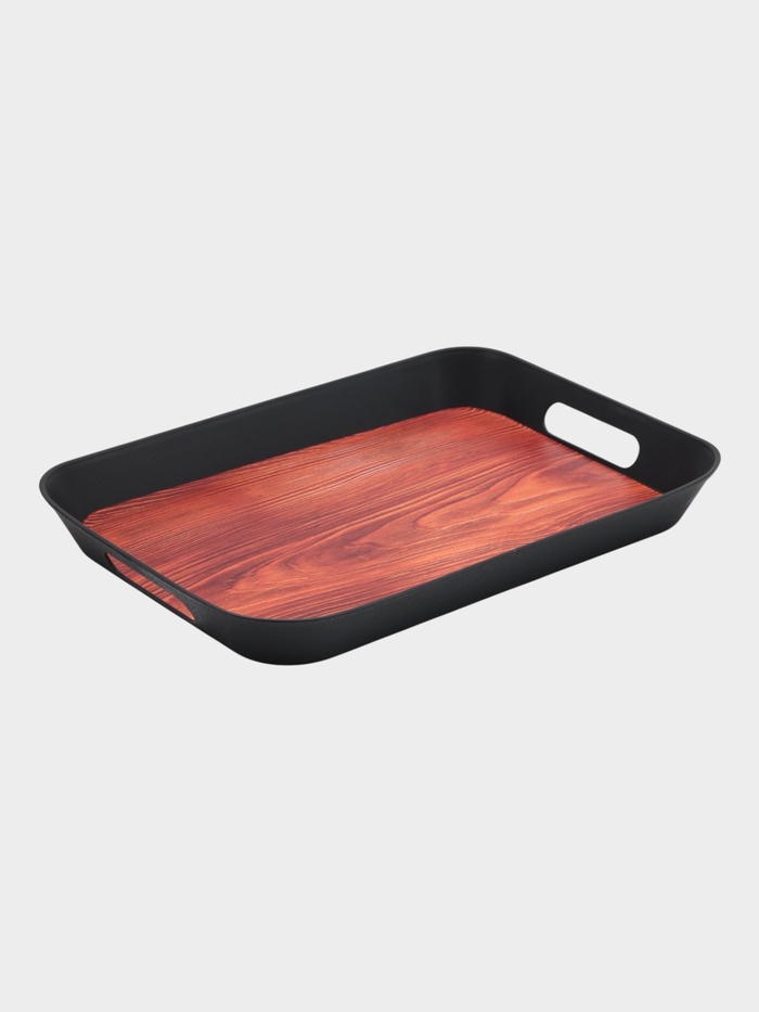 Поднос для подачи с ручками Magistro «Фьюжен Вуд», прямоугольный, 32×23×3.8 см, пластик, чёрный