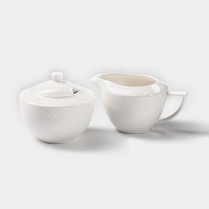 Набор сервировочный Wilmax «Юлия Высоцкая», 2 предмета: сахарница 340 мл, молочник 280 мл, фарфор, белый