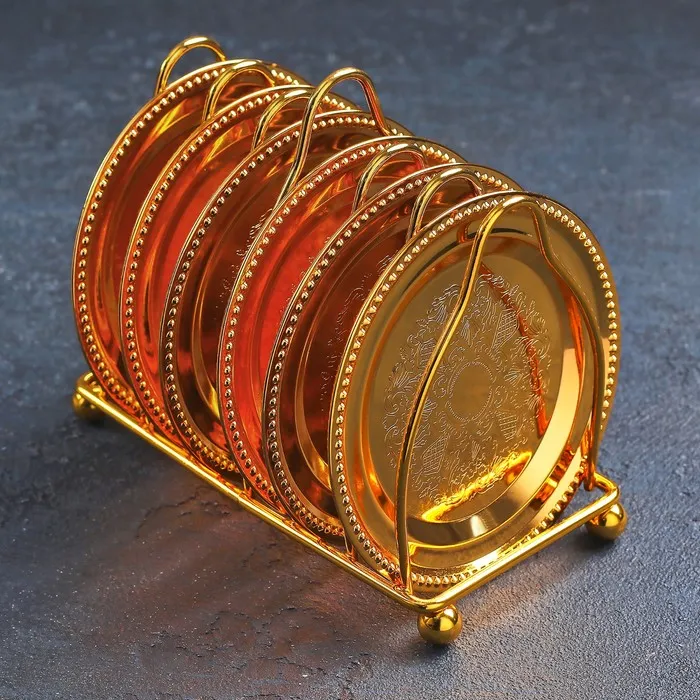 Набор блюдец с подставкой «Золото», d=10 см, 6 шт, цвет золотой